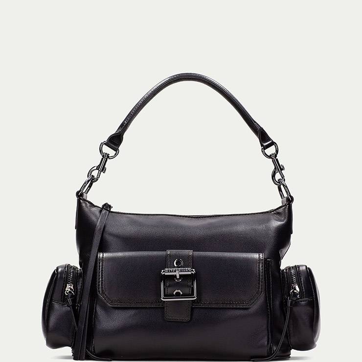 Bolso de hombro en PU. Bolsillos exteriores y cierre de cremallera. Hebilla decorativa en el bolsillo central. Bolsillo con cremallera en el interior. Medidas: 36x21x12 cm