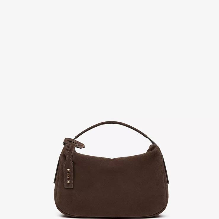 Bolso tipo hobo elaborado en ante. Cierre con cremallera. Medidas 27x17x10 cm.