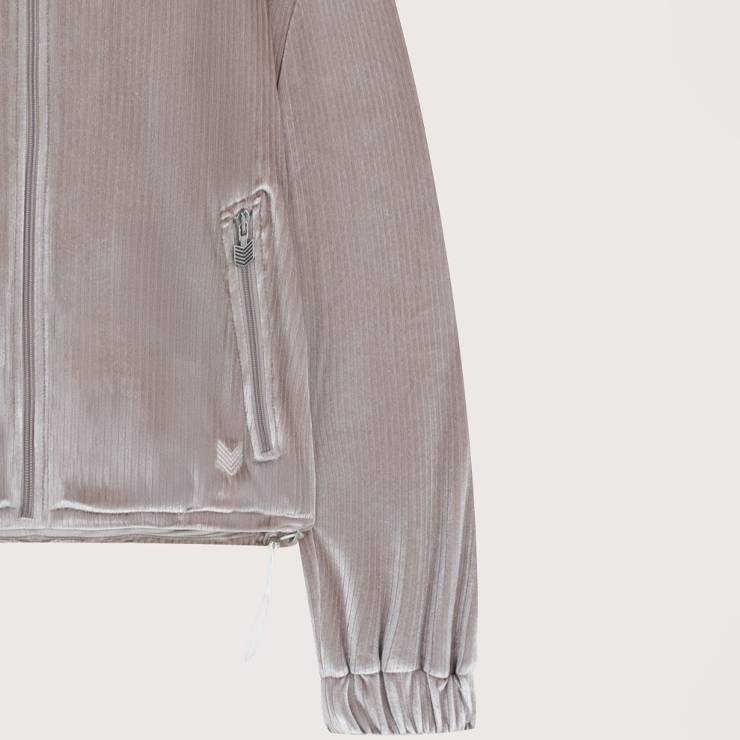 Chaqueta elaborada en pana con tacto suave y efecto brillante. Cierre de cremallera. Capucha. Ajuste cómodo. Cierre con cremallera.