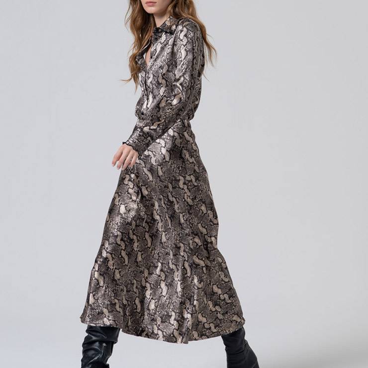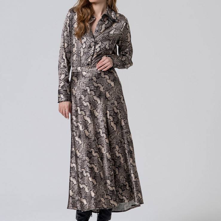 Falda midi de tejido satinado con print animal. Cintura elástica en la parte trasera. Cremallera lateral invisible.