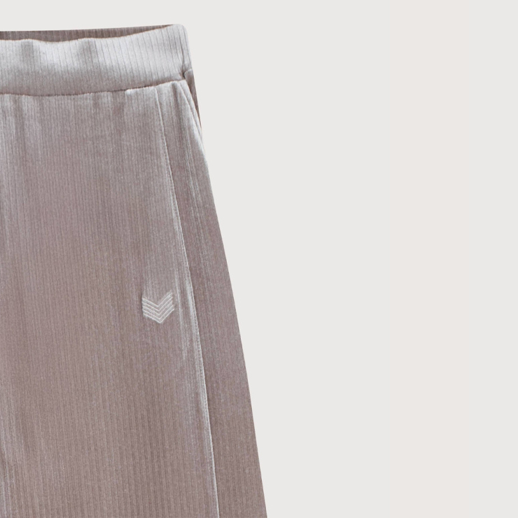Pantalón ancho elaborado en poliamida y elastano. Corte fluido. Terciopelo brillante. Bordado de espiga en los bolsillos.