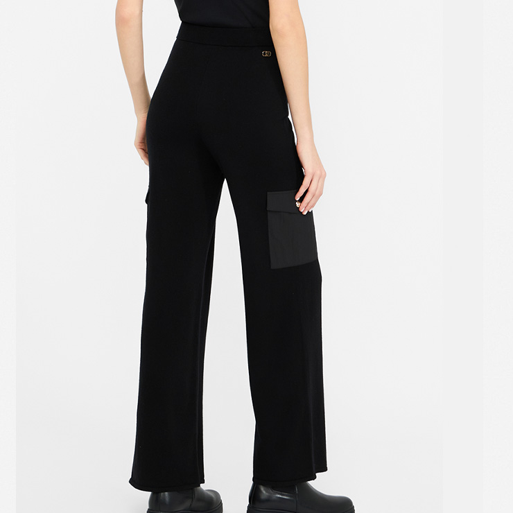 Pantalón ancho confeccionado en tejido de punto en mezcla de viscosa. Cinturilla elástica con cordón de ajuste en la cintura. Bolsillos cargo de nailon.
