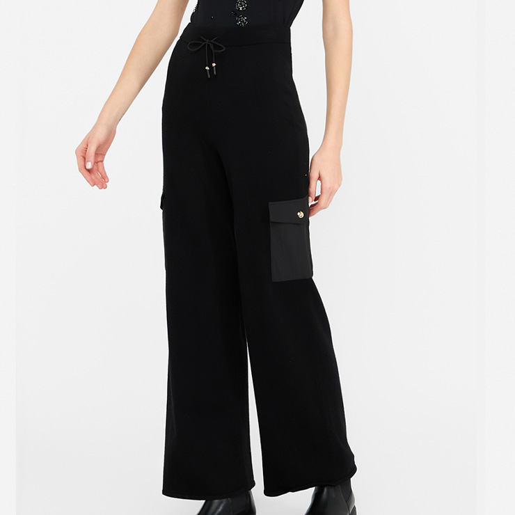 Pantalón ancho confeccionado en tejido de punto en mezcla de viscosa. Cinturilla elástica con cordón de ajuste en la cintura. Bolsillos cargo de nailon.