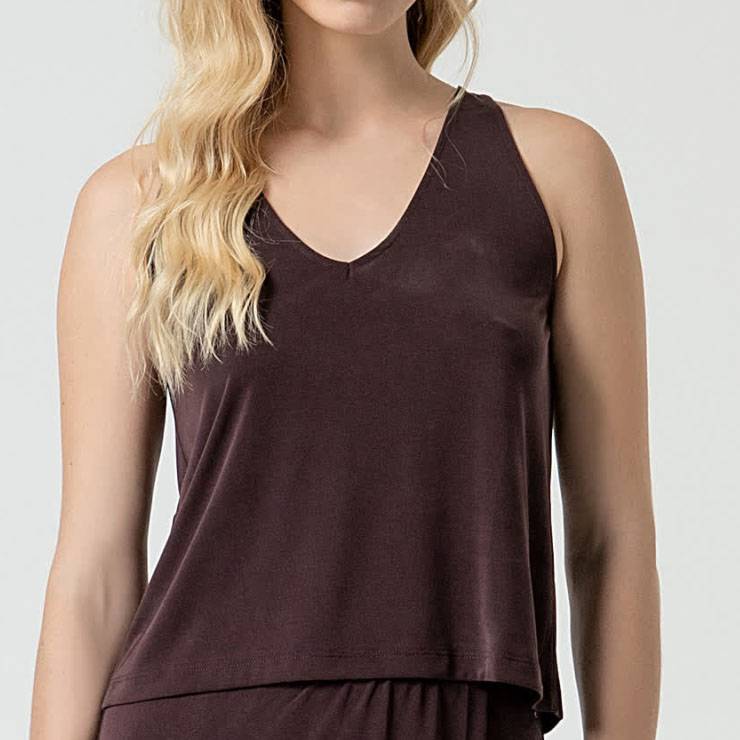 Camiseta tipo top elaborada en viscosa. Tirantes anchos. Escote en V. Tejido muy suave y elástico.