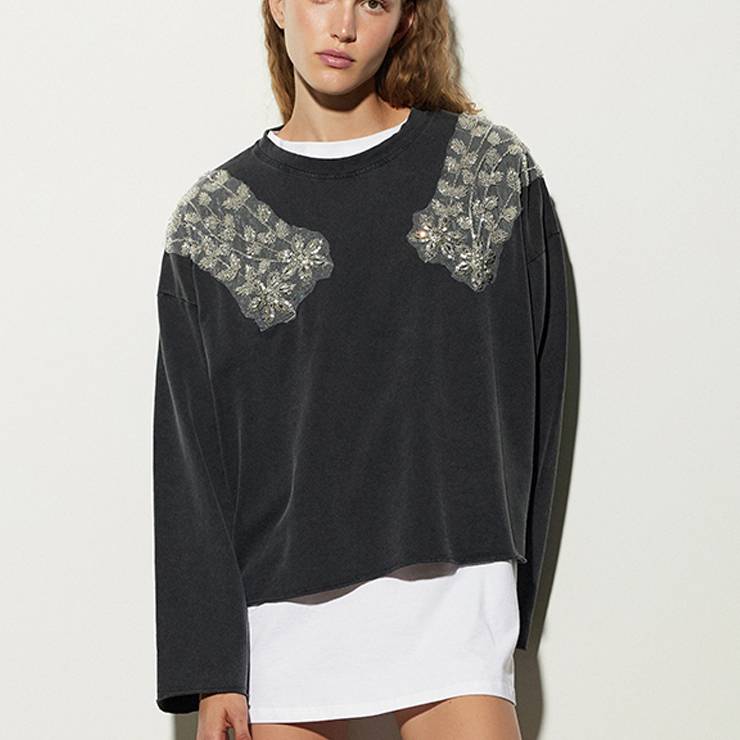 Sudadera elaborada en algodón. Manga larga y cuello redondo. Detalle decorativo en los hombros. Corte regular.