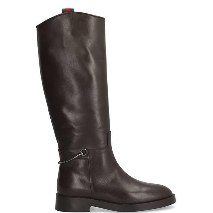Bota plana de piel estilo Riding boots. Adorno metálico en el tobillo. Cierre mediante cremallera lateral. Suela de goma flexible de gran comodidad.