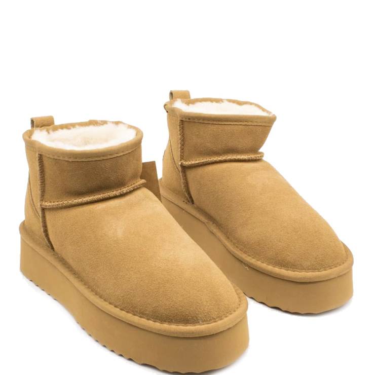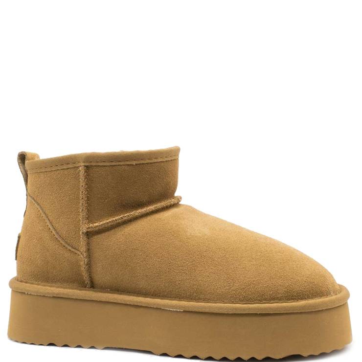 Botín elaborado en serraje. Suela de goma con plataforma de 5 cm de altura. Interior de borreguito.