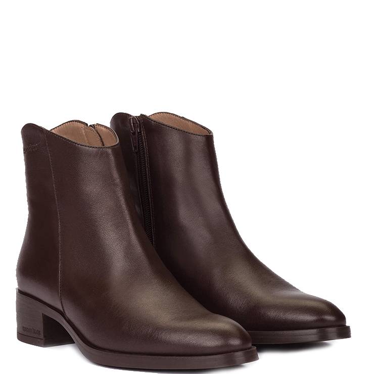 Botín elaborado en piel lisa. Caña baja y punta redonda. Cierre con cremallera lateral. Plantilla de MemoryGel. Suela de TPU con tacón de 4,5 cm de altura.