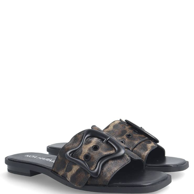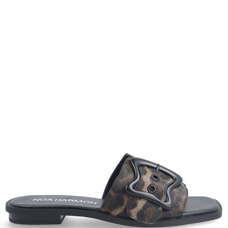 Sandalia plana de la marca Noa Harmon con acabado animal print.