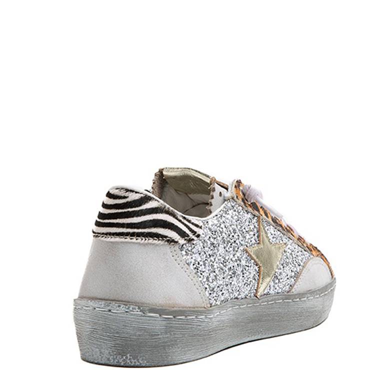Zapatillas deportivas elaboradas en combinación de piel, textil y glitter. Suela de goma de 3 cm. Plantilla acolchada. Cierre con cordones elásticos.