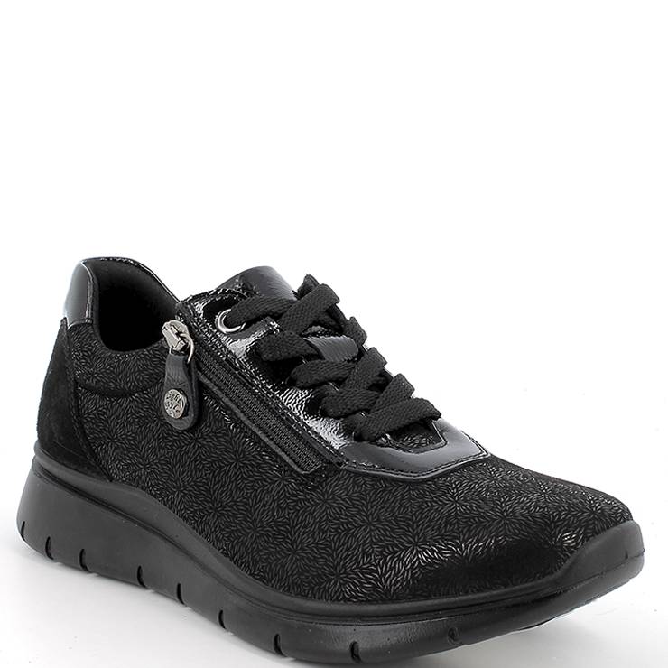 Zapatos elaborado en piel natural. Cierre con cremallera lateral y cordones. Plantilla extraíble. Suela de PU inyectado y sistema Shock Absorber. Plus de anchura de IMAC. Detalles brillantes.