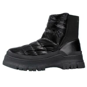 Botín de la marca Apepazza, modelo Selena en color negro. Botín en combinación de textil acolchado y elástico en la parte posterior. Detalle de piel lisa en el talón. Plantilla extraible. Suela de goma de plataforma de 5 cm de altura.