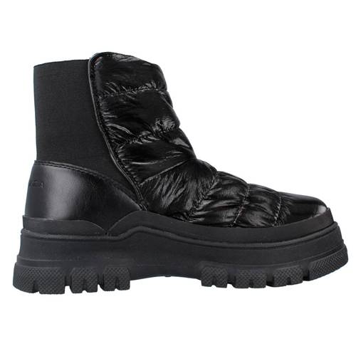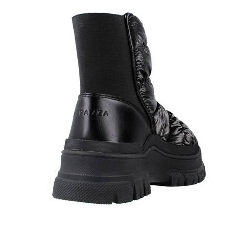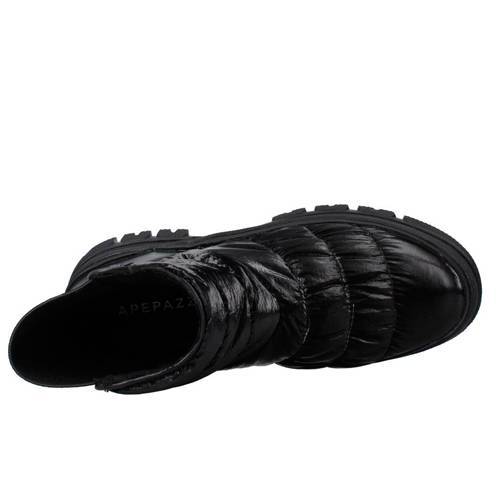 Botín de la marca Apepazza, modelo Selena en color negro. Botín en combinación de textil acolchado y elástico en la parte posterior. Detalle de piel lisa en el talón. Plantilla extraible. Suela de goma de plataforma de 5 cm de altura.