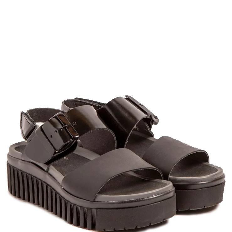 Sandalias de tiras anchas en piel. Suela de goma con plataforma de 4 cm. Plantilla de microfibra softlight. Cierre ajustable con hebilla.