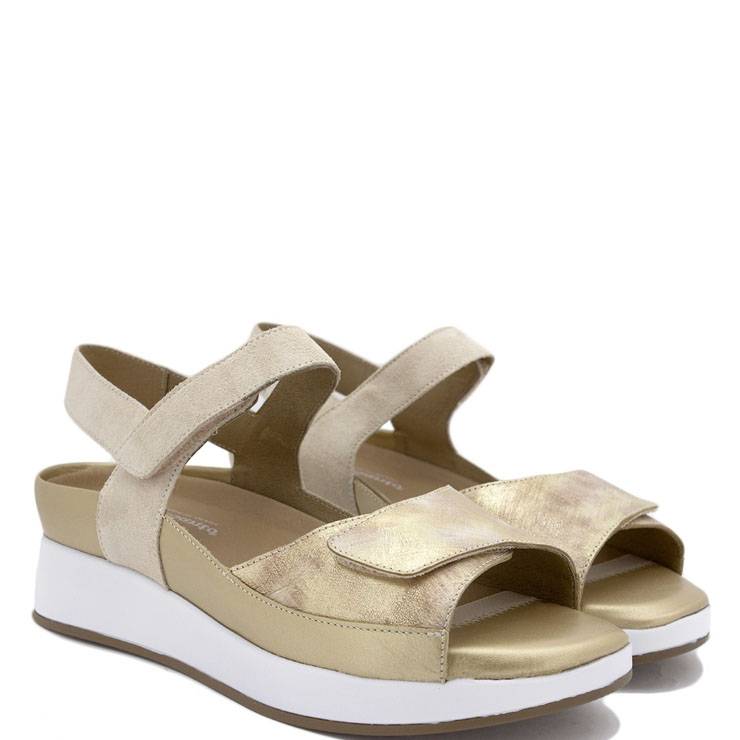 Sandalia elaborada en piel. Plantilla extraíble. BiFlex extra grueso. Suela de goma de 4 cm de altura. G-Safe (revestimiento antiviral y antibacteriano). Cierre ajustable con doble velcro.