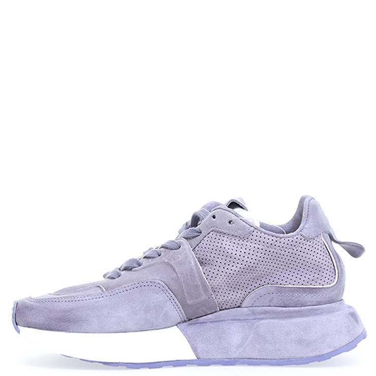 Zapatillas deportivas mezcla de materiales técnicos y piel perforada. Superposición de cortes. Suela de goma parcialmente envuelta y marcada con las coordenadas de la oficina Stile de A.S.98. Suela de plataforma de 4 cm de altura.